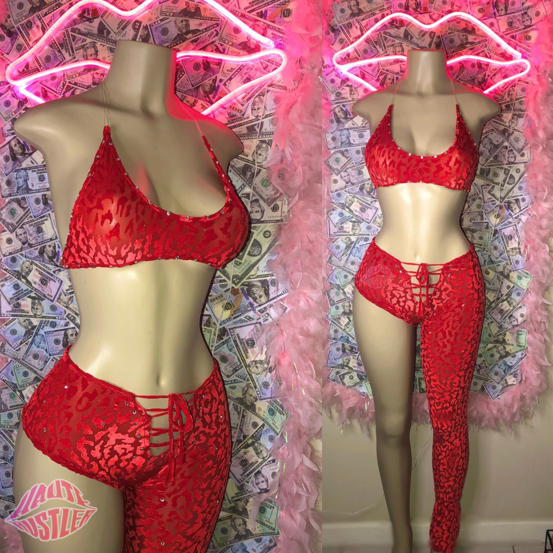 Velvet Cheetah Pant, Lace Up Detail, One Leg Style